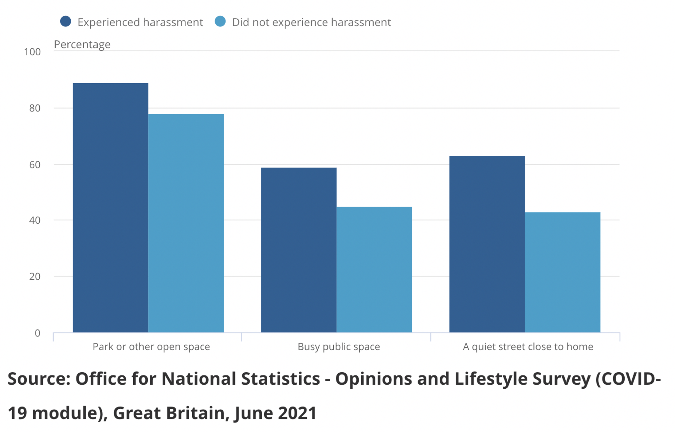 View the Office for National Statistics figures on the proportion of females who felt "very or fairly unsafe" walking alone after dark:
